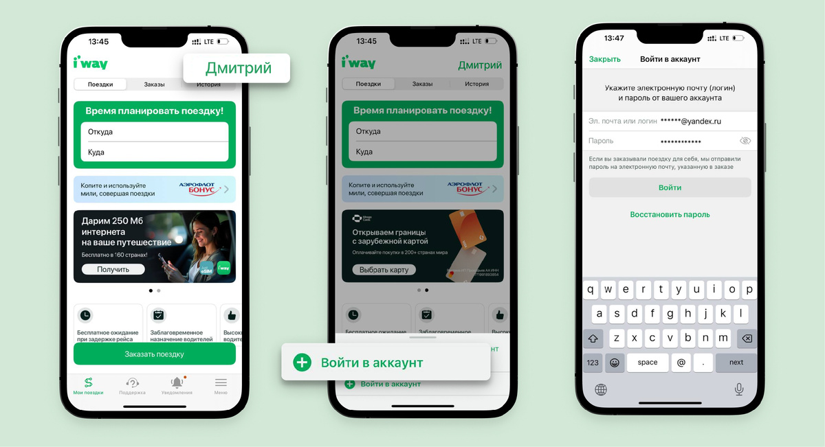 Четыре лайфхака для пассажиров i’way Если планируете поездку, но не хотите переплачивать, сохраняйте эту статью и делитесь советами с близкими. Ведь мы раскрываем проверенные способы сэкономить — от моментальных скидок до банковских компенсаций. Самый простой способ снизить стоимость поездки — авторизоваться в приложении по электронной почте. После входа в аккаунт вы получите скидку 10 % на все трансферы. Чтобы получить скидку: Плюсы Скидка бессрочная и применяется автоматически ко всем заказам. Заглядывайте в приложение i’way, ведь мы регулярно делимся промокодами на скидки до 10%. Плюсы Если пассажир прошёл авторизацию по почте, то вместе с промокодам выгода составит до 20%! Новинка 2025 года — сертификаты на трансферы. Их можно использовать на поездки по России и миру в течение года. Сертификаты продаются со скидкой 10% от номинала. Это значит, что сертификат на 3 000 ₽ обойдётся всего в 2 700. Плюсы Сертификат можно потратить самому или подарить тем, кто любит предсказуемость и бе
