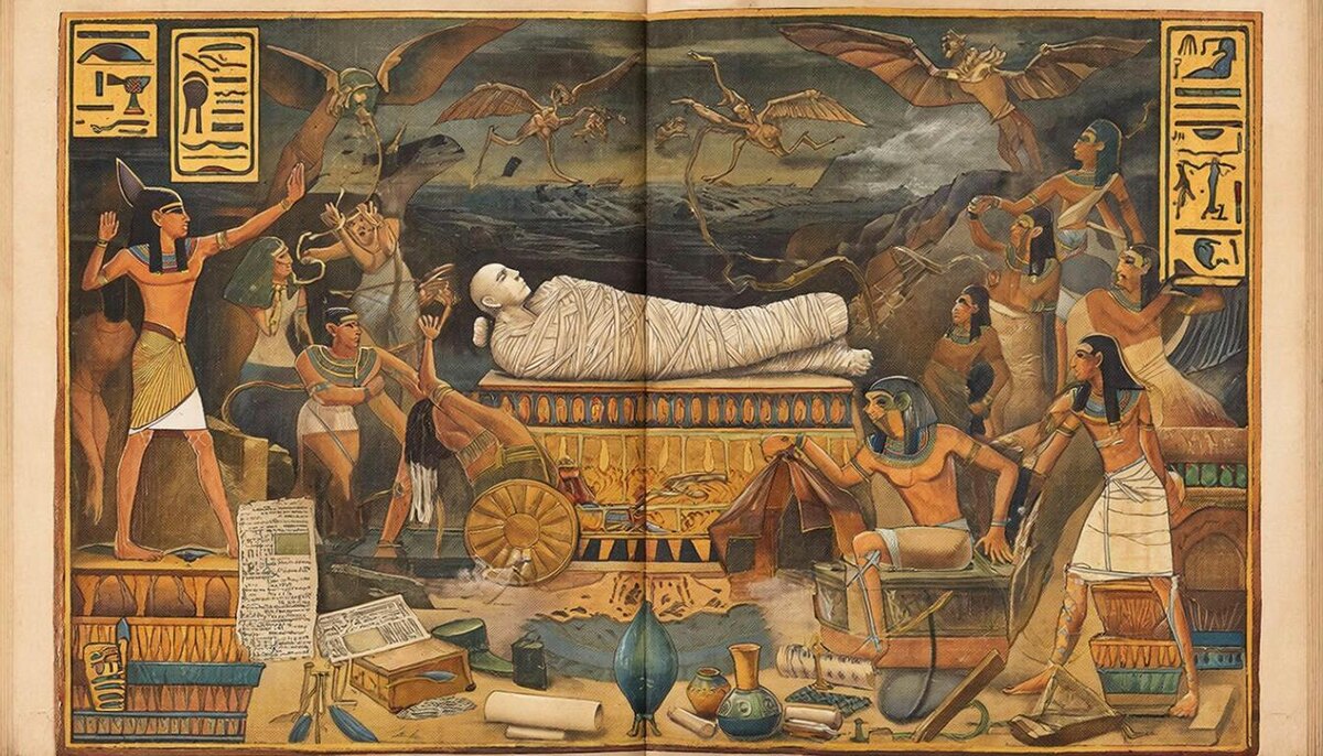 Мумификация в древнем Египте соединяет в себе практическую смекалку и мифологическую глубину. Натроном сушат плоть, масла пропитывают кожу, бинты фиксируют форму — и одновременно повторяется космический сценарий: Осириса воскрешают, человек становится «истинно голосом» перед судом богов, его имя продолжают произносить живые.