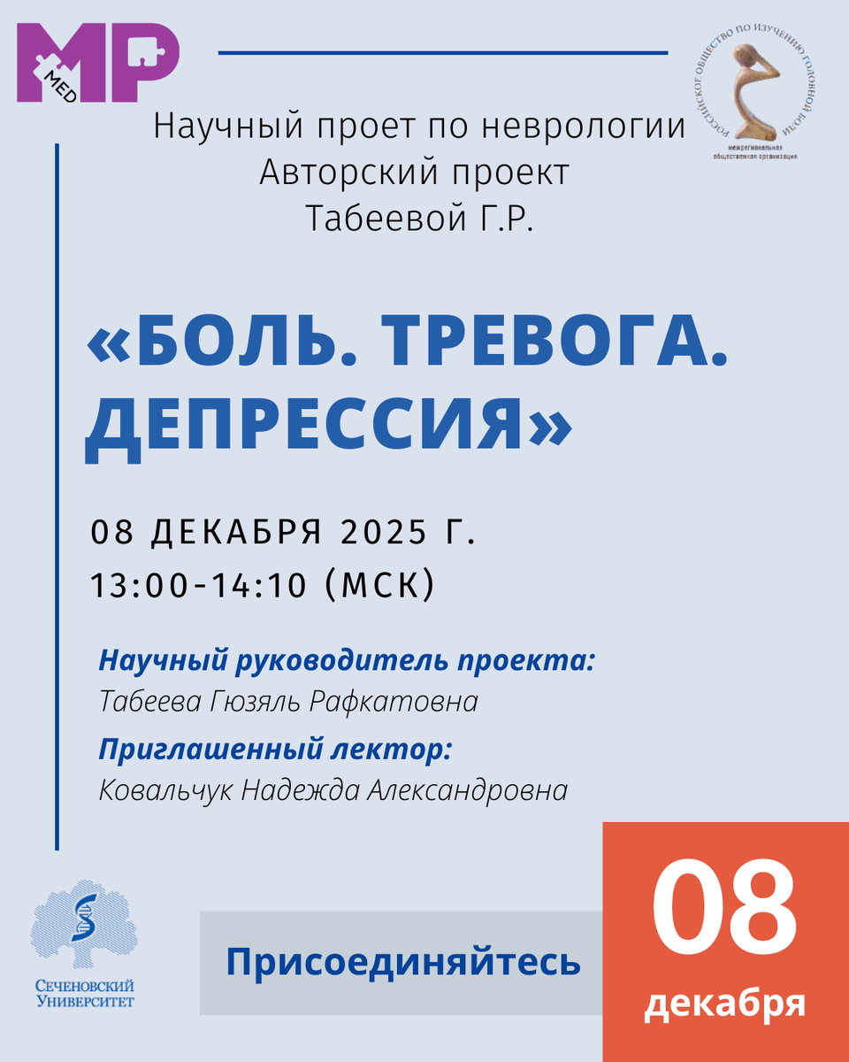 13:35-14:05 Современные подходы к профилактике хронизации головной боли: Роль коррекции тревожно-депрессивных нарушений. Ковальчук Н.А.