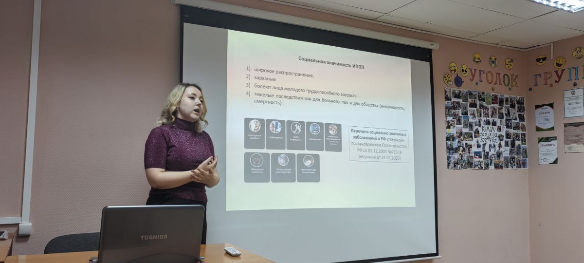 В рамках проекта «Здоровый студент» в Уральском лесотехническом колледже прошла важная лекция на тему: «ИППП: влияние на репродуктивное здоровье и профилактика заражения» 💡 🔹 Спикер: Екатерина Сергеевна Мыльникова — врач-дерматовенеролог СОКВД, ассистент кафедры дерматовенерологии и безопасности жизнедеятельности УГМУ. 🔹 Что обсуждали? ✔️ Какие инфекции передаются половым путём и как их распознать? ✔️ Чем опасно отсутствие лечения? (Вплоть до бесплодия и хронических заболеваний!) ✔️ Где и как можно сдать анализы? 🙏 Большое спасибо кафедре дерматовенерологии и безопасности жизнедеятельности УГМУ за важную просветительскую работу и заботу о здоровье студентов! 💙 Берегите себя и своё здоровье! 💙