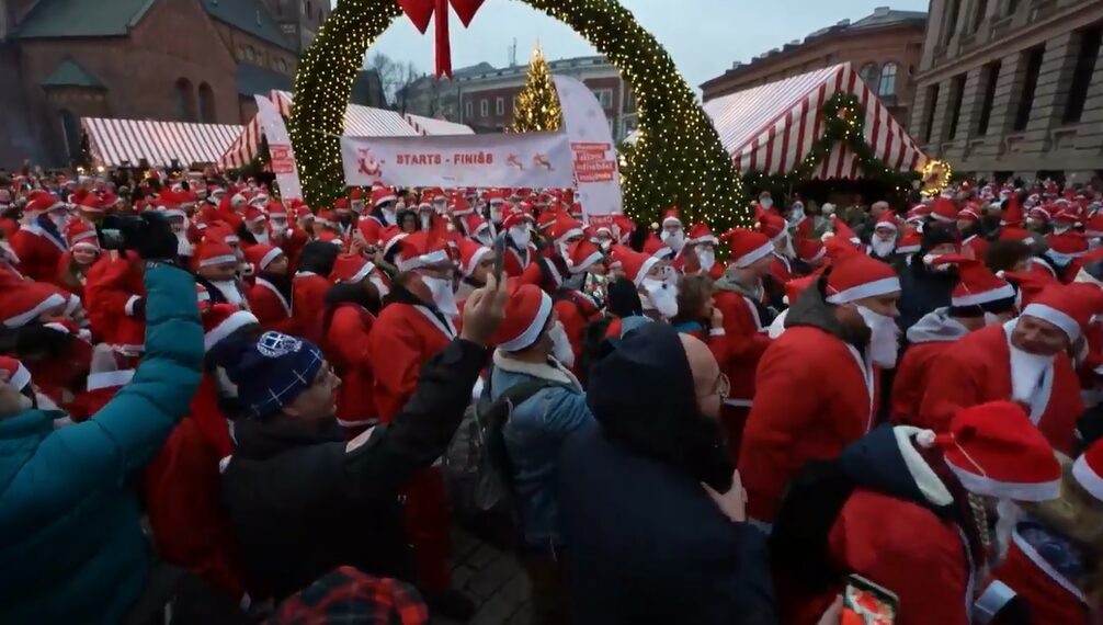 Ежегодный благотворительный забег Санта-Клаусов собрал сотни участников на Домской площади в Риге в воскресенье. На кадрах бегуны в сказочных костюмах преодолевают двухкилометровую дистанцию, а затем получают памятные награды. Среди участников — взрослые, дети и даже домашние животные. «Учитывая количество компаний и людей, которые были здесь, это просто потрясающе! Прекрасный забег!» — сказал один из участников. Мероприятие проводится в латвийской столице с 2008 года. Присоединиться к праздничной пробежке можно за символический взнос. Собранные в этом году средства будут направлены в программу «Детский мобильный центр здравоохранения» фонда Ronald McDonald House Charities (RMHC), который оказывает медицинскую помощь жителям сельских районов страны.