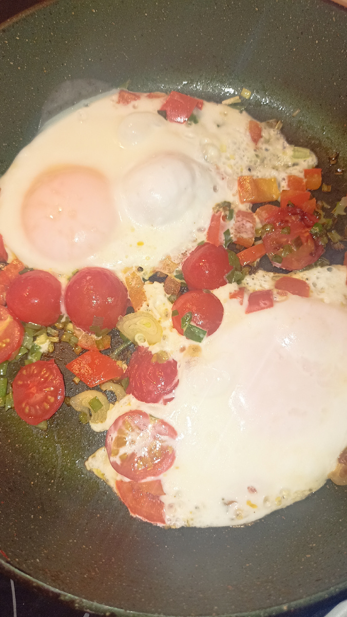 Но я время зря терять не хочу) Утром поставила стирку. Полежала. Потом позавтракала. Как же всё-таки вкусно есть жареные яйца, а не вареные😅 Масла капельку добавила, чтоб уж совсем не пускаться во все тяжкие)