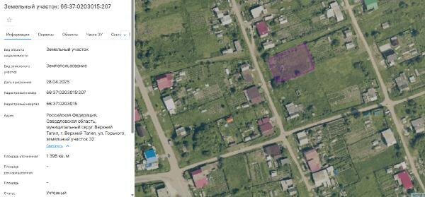 Название: Земельный участок с кадастровым номером 66:37:0203015:207, общей площадью 1395,00 кв.м., категория земель – земли населенных