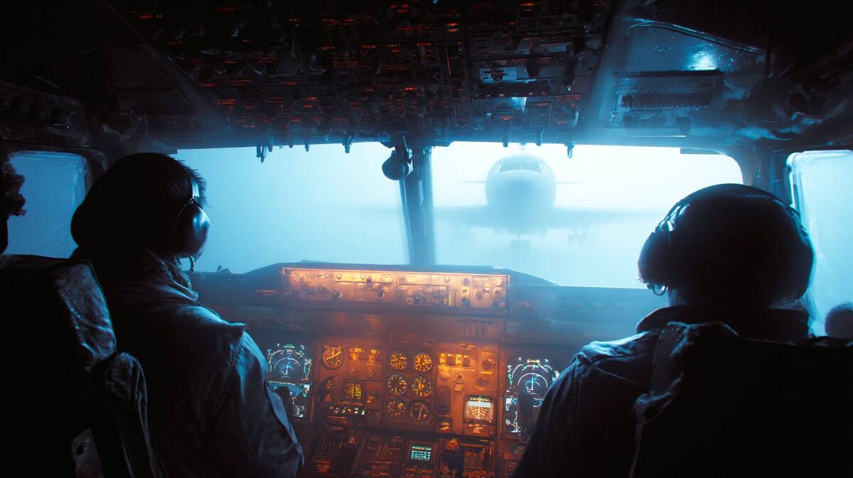 Капитан в панике едет вперёд, насколько может, стараясь убраться хотя бы с центра полосы. Пытается связаться с диспетчером. Капитан наконец находит правильную частоту: «Эм, мы не уверены. Тут такой туман, мы застряли». Диспетчер с нарастающей тревогой спрашивает: «Вы на полосе или на рулёжке?».