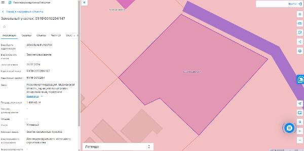 Название: Земельный участок с кадастровым номером 51:19:0010204:147 площадь 1494 по адресу Российская Федерация, Мурманская область