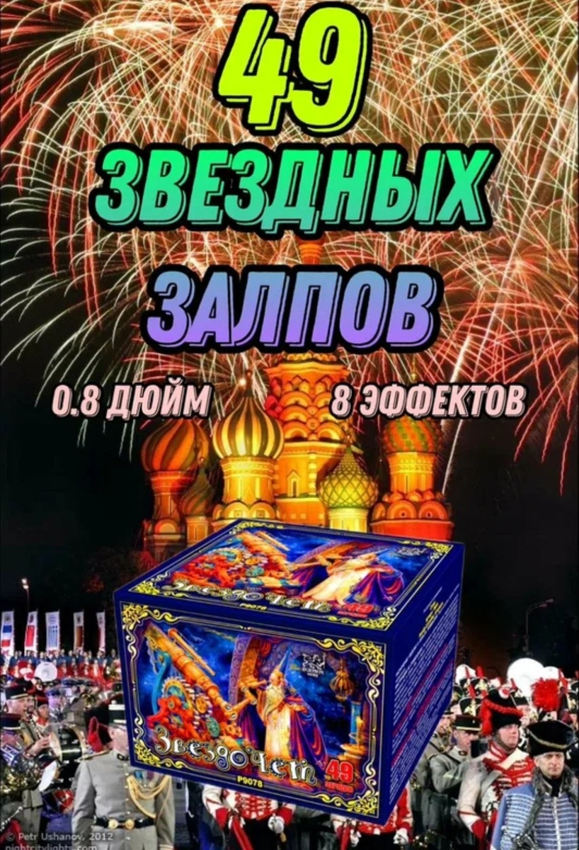 Всем привет! Если вы, как и я раньше, думаете, что все салюты из одной ценовой категории примерно одинаковы — этот пост для вас. В этом году я решил отказаться от привычной россыпи маленьких батарей и купил одну, но большую — «Фейерверк Мастер Звездочет» на 49 залпов. И это было лучшее решение за последние праздники. Почему я вообще его взял? (Спойлер: не из-за жадности) Раньше я брал 3-4 маленькие батареи по 16-18 залпов. Казалось, так выгоднее и дольше. Но на деле между ними вечные паузы на перезарядку, они путаются, а общая картинка получается скомканной. Я захотел настоящего непрерывного шоу. И «Звездочет» обещал именно это. Первое впечатление: солидно, но страшновато · Упаковка: Большая, тяжелая коробка. Выглядит солидно, не как игрушка. Сразу чувствуется, что внутри серьезный заряд. · Оформление: Яркое, с изображением эффектов. На корпусе четкая инструкция и предупреждения. Важный момент: Основание широкое и устойчивое. Это критически важно для безопасности. Самое главное