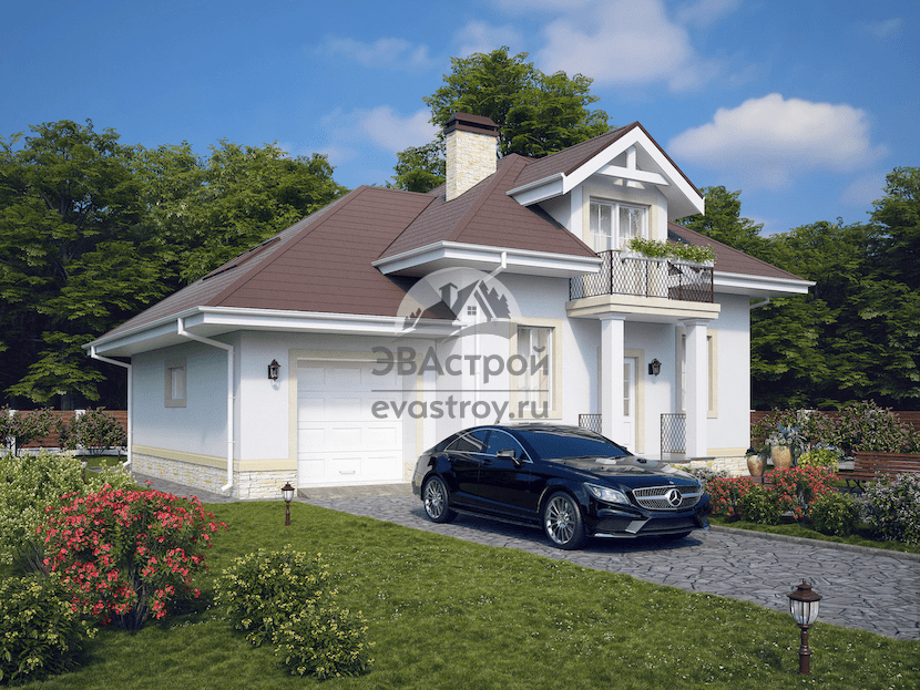 Номер проекта: П17 Разделы проекта: Архитектурный и Конструктивный разделы Узнать о проекте больше можно на сайте evastroy.ru или по телефону +7 (495) 175-30-40 Общая площадь: 205 м2; Габариты дома: 10.4 x 12.4 м; Этажность: 2 (вкл. мансардный); Фундамент: фундаментная плита с ребрами жесткости; Материал стен: газобетонные блоки 400 мм; Перекрытия: монолитное перекрытие; Крыша: мансардная; Кровля: мягкая черепица; Фасад: штукатурка фасадная; Стиль: европейский. Двухэтажный дом с мансардой, общей площадью 205 м2, предназначен для семьи из четырех человек. Особенности и преимущества проекта: четкое разделение помещений на общественно-гостевую зону первого этажа, ночную зону мансарды и техническую часть в виде гаража с хозблоком; комнаты с большими гардеробными; просторная гостиная. Большую часть нижнего яруса занимает открытое дневное пространство, включающее просторную гостиную, п-образную кухню и холл. В центре помещения находится представительный камин. В эркере удобно обустроит