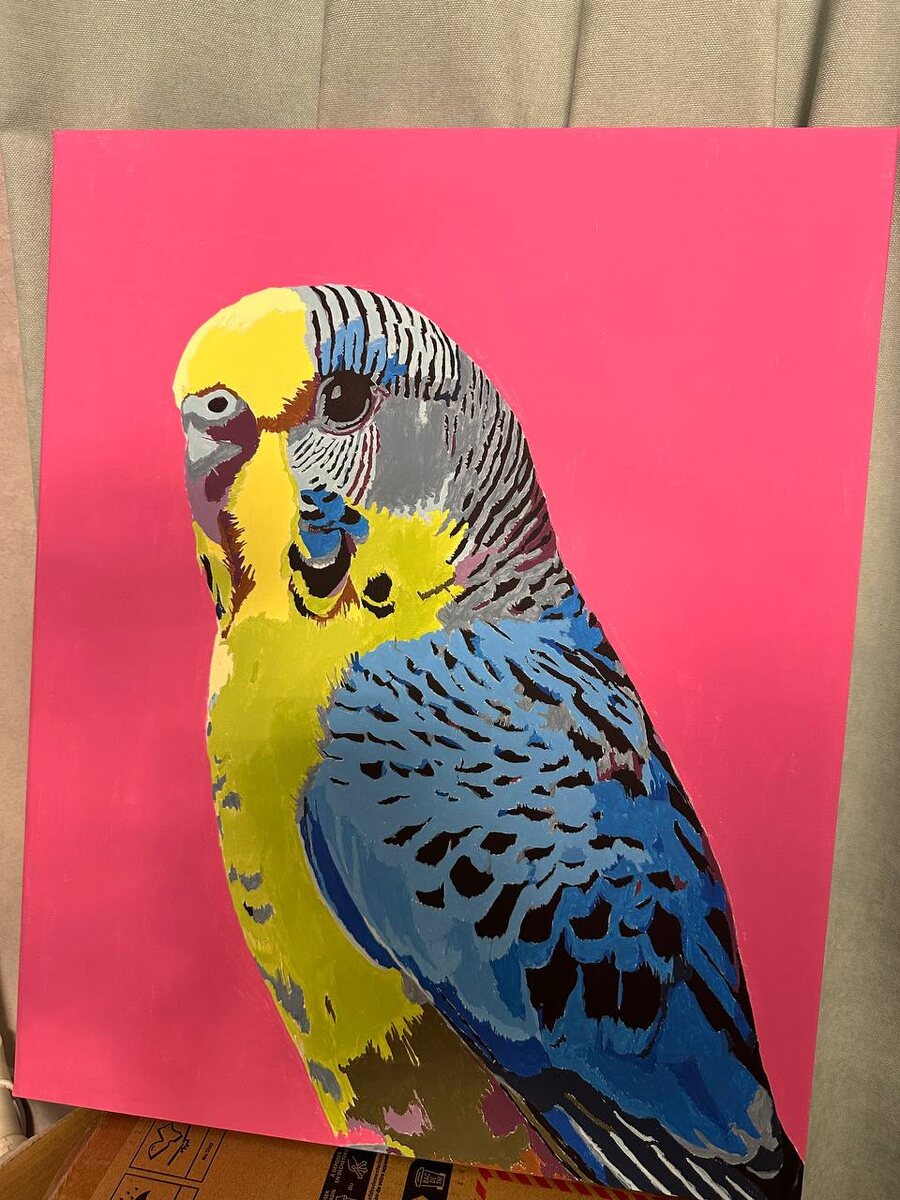 Осталось покрыть лаком через неделю, как просохнут краски. Будет еще вторая картина. Тоже с попугаем) Потом покажу на стене, когда повешу.
