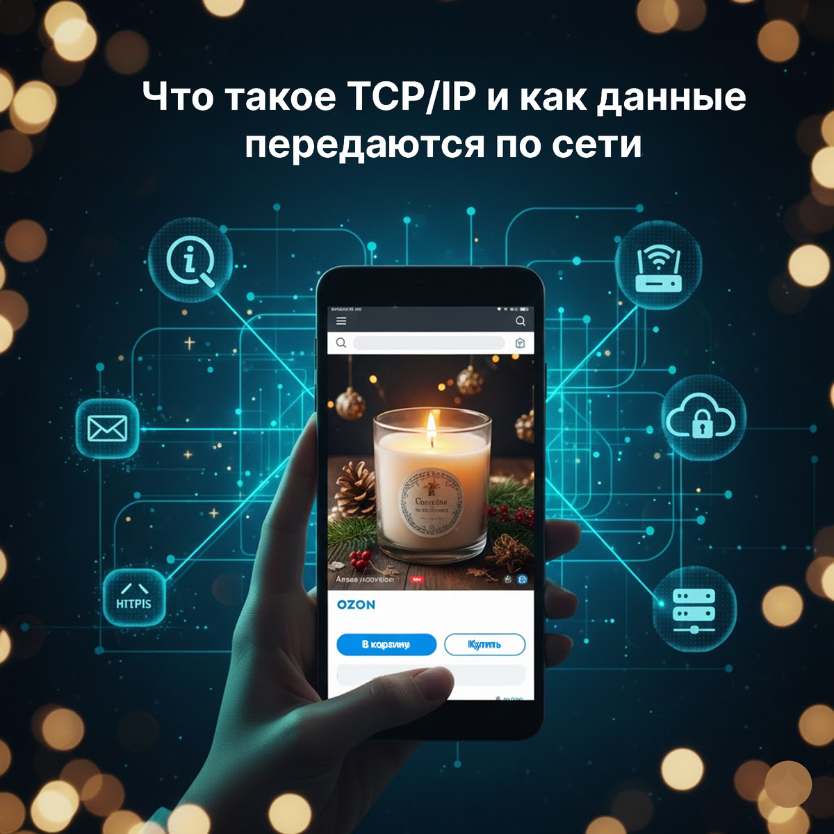 Новогодняя магия? Почти. На самом деле за эти доли секунды ваш телефон и сервер маркетплейса успели обменяться тысячами маленьких пакетов данных по всему миру. И всё это по строгим правилам одного-единственного «закона интернета» — модели TCP/IP.