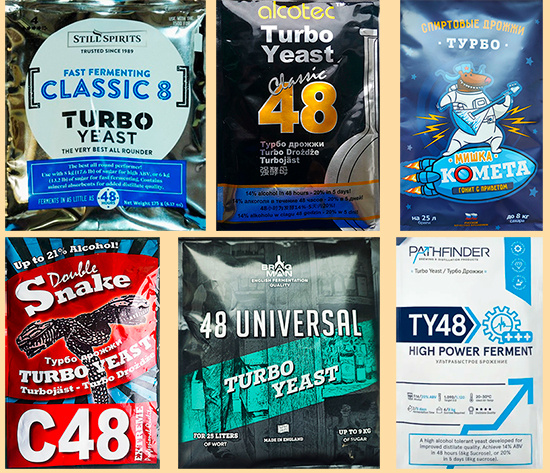 Дрожжи от английских производителей, такие как Bragman, Double Snake C48, Alcotec 48 turbo.