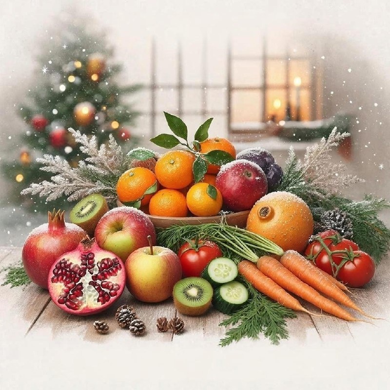 Продукты декабря ❄️ Наступил декабрь – прекрасная пора подготовки к праздникам. Однако это также и время, когда организм особенно нуждается в витаминах, полезных микро- и макроэлементах. Поэтому зимой рацион должен быть максимально разнообразным. Фрукты: ✔️Король декабря – мандарин. Не оставляйте в стороне и другие цитрусовые. Они богаты витамином С, который предохраняет организм от вирусов и бактерий, ускоряет процесс заживления ран, синтезирует коллаген, укрепляет сердце и сосуды, снижает давление. ✔️Яблоки и груши. Плоды богаты витаминами А, В, С, Е; в них высокое содержание кобальта, участвующего в ферментных реакциях, кроветворении, регулировании работы нервной системы и печени. ✔️Хурма. Богата бета-каротином, который способствует здоровому зрению, и йодом, нормализующим работу щитовидной железы. В ней также есть железо, калий, марганец, витамины группы В, фосфор, магний и пектин. ✔️Продолжается сезон гранатов, айвы, киви, ананасов, бананов, авокадо и манго. Овощи: — Морковь, к
