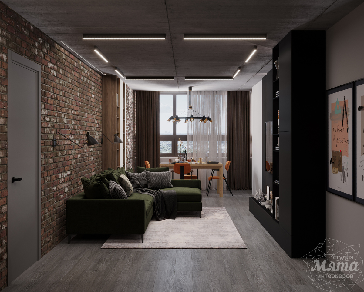 Стиль лофт - это решительный уход от всего привычного и готовность к реальным переменам. Выразительный, контрастный, смелый - так коротко можно описать подобный дизайн. Интерьер в стиле лофт все чаще можно встретить в загородных домах и квартирах-студиях у тех, кому нравится уединение и атмосфера спокойствия. Но решились бы вы на такие перемены в обычной городской квартире? Наш заказчик - молодой человек из Новосибирска - ведет активный образ жизни, много путешествует. Главным пожеланием было создать интерьер, в который хочется вернуться, где можно расслабиться и обрести душевное равновесие. Наши дизайнеры с энтузиазмом приступили к воплощению этой идеи. В этом интерьере кирпичная стена выступает не просто фоном, а ключевым элементом, задающим характер всему пространству. Настенные светильники вдоль кирпичной стены подчёркивают её рельеф и добавляют глубины. Кирпич прекрасно сочетается с деревом (обеденный стол, элементы стеллажа) и металлом (ножки мебели, светильники), что типично