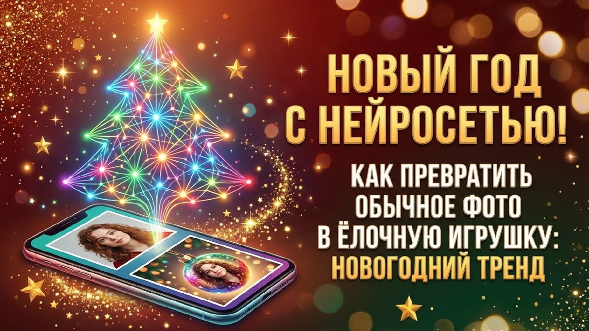 🎄 Делаем из обычного фото милую ёлочную игрушку: повторяю новогодний тренд с помощью нейросети