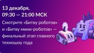 13 декабря в Москве состоится финал «Битвы роботов», который соберет сильнейшие команды со всего мира. В программе — три шоу-поединка в категориях роботов до 110 килограмм и мини-роботов до 1,5 килограмм. В финал вышли 32 команды из десяти регионов России, а также из Индии, Китая, Туниса, Бразилии и Ирана. Ленинградскую область представляет команда Кванториума Всеволожского агропромышленного техникума «БРПЛ». «Битва роботов» — это ежегодное международное соревнование, которое проводится при поддержке национального проекта «Экономика данных».