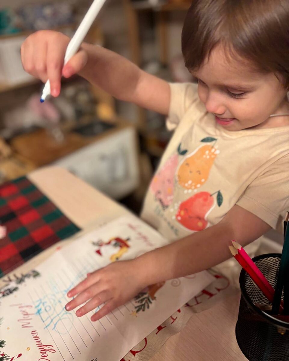 Писали письмо Деду Морозу 🎅 У Эмилии вариант попроще, а Лука даже отвечал на вопросы, писал сколько ему лет и откуда он. Но шедевр в виде рисунка был у обоих. 🔴Снова пригодился материал «Шершавые цифры» (про них кстати еще не рассказывала). ⭐️ А вы с детьми написали письмо Деду Морозу? #doublemama #М_материалы