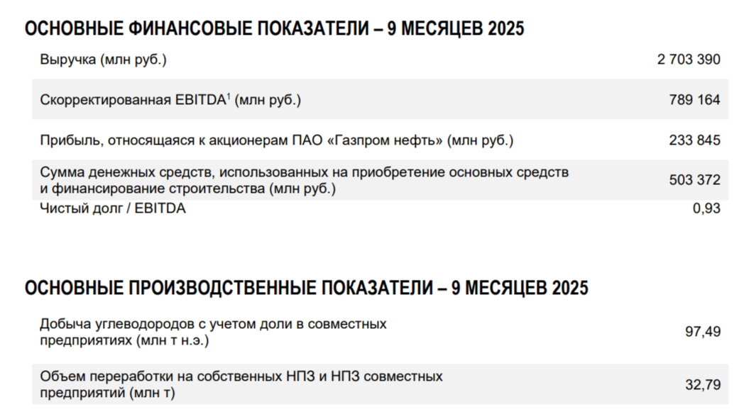 🛢 ГПН представила нам финансовые результаты за III квартал и 9 месяцев 2025 г. Сокращённый отчёт получился ожидаемо слабым по сравнению с прошлым годом (увеличение прибыли произошло из-за налогов), но по сравнению с прошлым кварталом прогресс (цена сырья возросла+РФ нарастила добычу). Также стоит отметить увеличенный CAPEX и сюрприз по выкачке денег Газпромом (нет, это неповышенные дивиденды): 🛢️ Выручка: III кв. 928,4₽ млрд (-8,9% г/г), 9 м. 2,7₽ трлн (-11% г/г)