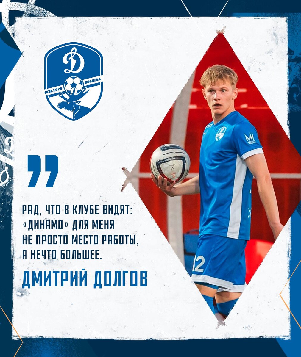 Первые слова Дмитрия после продления контракта: — Максимально рад! Чувствую себя в «Динамо» и в Вологде очень комфортно. Приятно быть частью клуба, который с каждым годом прибавляет и растет во всех направлениях. Чувствую, что прогрессирую вместе с партнёрами. Это видно и по турнирной таблице. Я хотел остаться в «Динамо», клуб тоже намеревался сохранить меня. Рад, что здесь ценят и видят: «Динамо» для меня не просто место работы, а нечто большее. Уже успел немного отдохнуть, на днях со свежими силами приступил к подготовке к новому сезону. Отдельная благодарность и привет всем нашим болельщикам, такого внимания, поддержки и любви я нигде не встречал! Спасибо Вам! Скоро обязательно увидимся! @dynamovologda