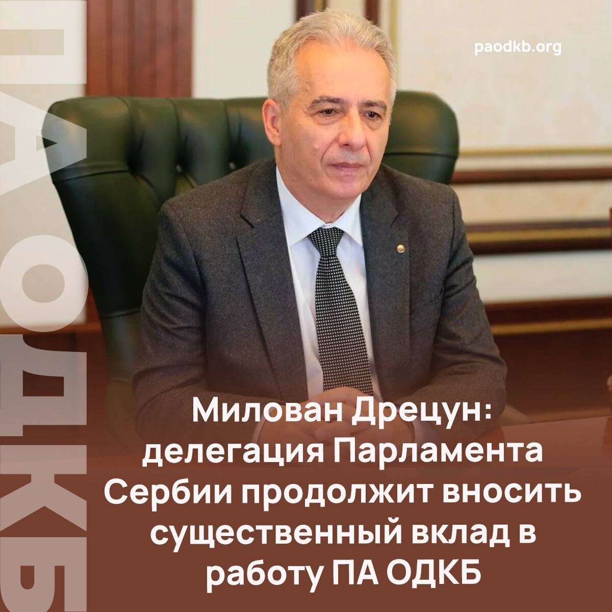 🇷🇸 Глава постоянной делегации сербского Парламента в ПА ОДКБ Милован Дрецун направил свое приветствие участникам заседания Парламентской