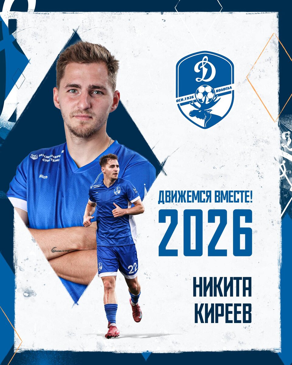 ⚡Киреев и «Динамо»: вместе до конца 2026 года Бело-голубые договорились о продлении контракта с атакующим полузащитником. В прошедшем сезоне Никита провёл 28 матчей, забил 10 мячей и отдал 2 голевые передачи. Всего за вологодский клуб полузащитник сыграл 79 матчей и забил 20 мячей. Киреев является лучшим бомбардиром «Динамо» в новейшей истории. Движемся к новым достижениям и победам вместе, Кирей 🙌 @dynamovologda