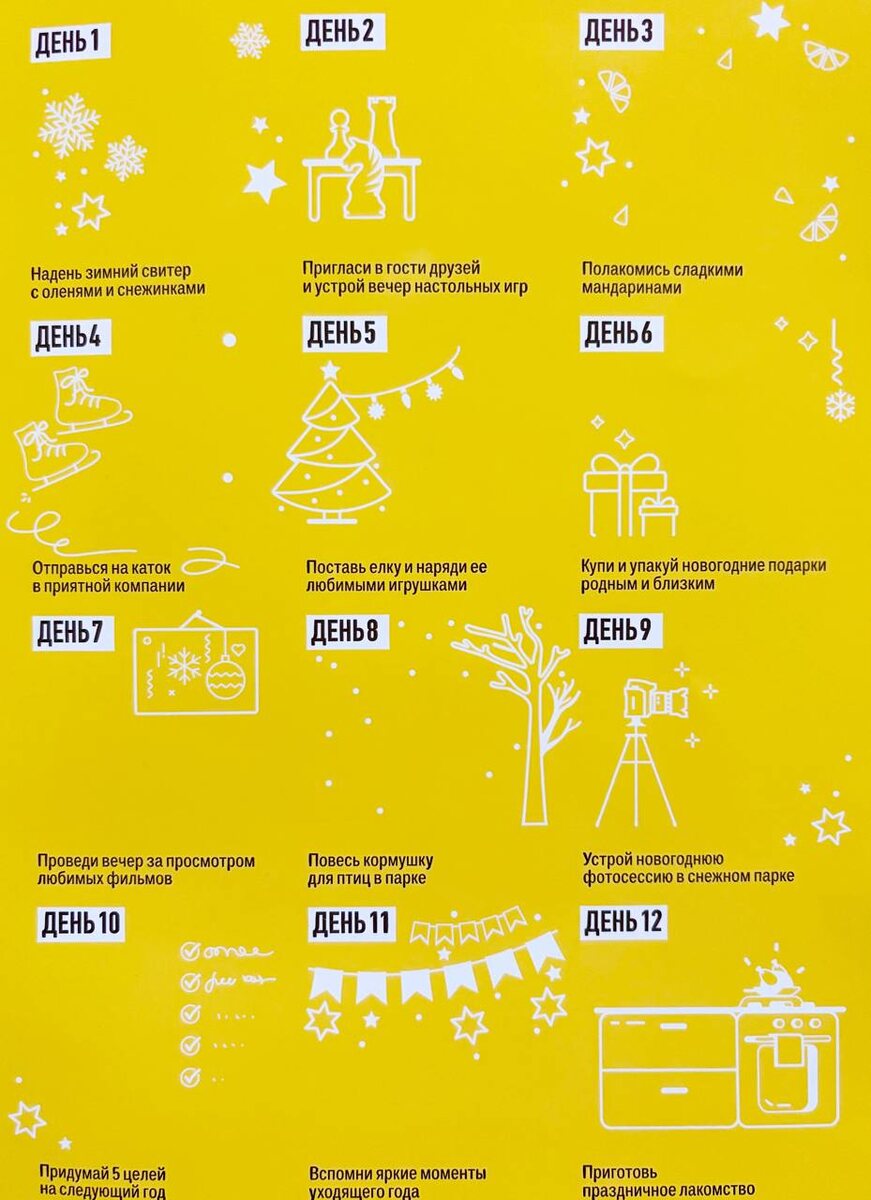 Вчера писала про то, что хочу пригласить вас со мной сделать декабрь и ожидание нового года немного более запоминающимися, как в детстве. Вообще я не про всякие там гирлянды, елки и подарки, сто лет не украшала дом на праздники, да и сам Новый год ждала с неохотой и даже раздражением. Недавно с подругой обсуждали эту тему и я поняла, что и не помню уже когда у меня был по-настоящему праздничный декабрь и Новый год. Потом убиралась дома и на меня буквально свалился запрятанный где-то на верхней полке адвент-календарь. Хороший намек! Если гора не идет к Магамеду, то Магамед может испечь праздничное печенье 🍪 и кто-нибудь тогда точно к нему приедет) Так что присоединяйтесь ко мне!) На фото тот самый адвент, я решила идти не по порядку и начать с самого простого - с мандаринов! Позже пойду в магазин) А что выбираете вы?