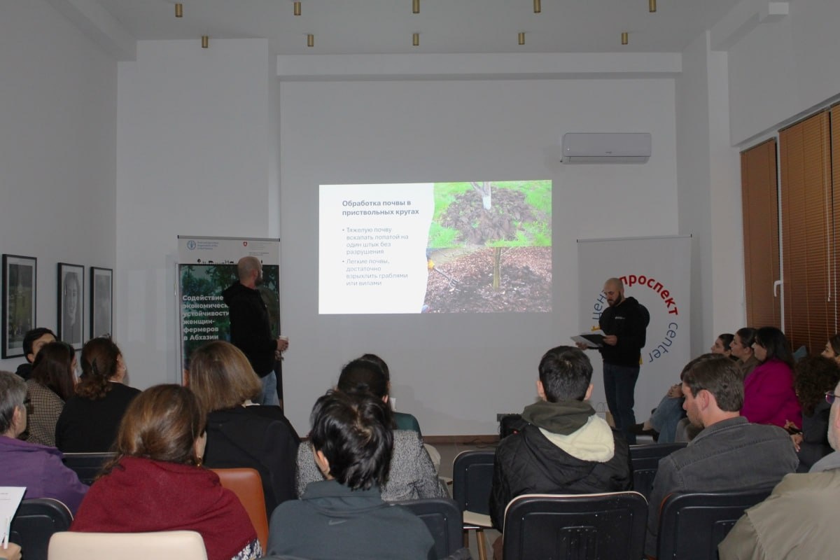 Информационный воркшоп, посвящённый осенне-зимним агрономическим мероприятиям и устойчивым практикам ухода за приусадебными участками в холодный период, провели в Центре «Проспект» в Сухуме. Участники воркшопа получили подробные рекомендации по уходу за почвой, контролю вредителей и болезней, укреплению здоровья растений и поддержанию плодородия земли в осенне-зимний период. Особое внимание было уделено фитосанитарным мерам, способам повышения иммунитета растений и эффективному использованию удобрений для сохранения питательных веществ в почве. Агрономы ФАО поделились практическими советами, которые можно сразу применять на собственных приусадебных участках, а также рассказали, как минимизировать угрозы со стороны вредоносных организмов. Все участники семинара получили пакеты с фосфорными удобрениями. Воркшоп прошел в рамках проекта «Содействие экономической устойчивости женщин-фермеров в Абхазии», реализуемого проектным офисом ФАО при финансовой поддержке Швейцарского агентства п
