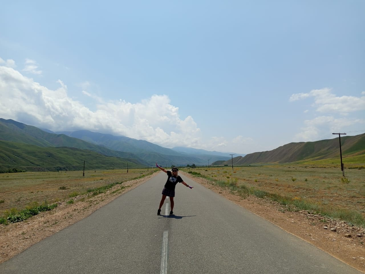 Машин на дороге было очень мало и это не могло не радовать. Многие из них приветливо сигналили, некоторые хотели подвезти, а одна машинка остановилась: мужчина с сынишкой достали из багажника канистру кымыза и угостили нас парой стаканчиков этого чудодейственного напитка.