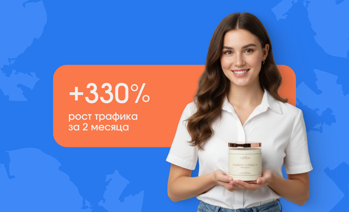 Карточка теряла трафик — рядом стояли Летуаль, Золотое Яблоко и сетевые гиганты. Через 60 дней Ucandles обошел всех и вырос в обращениях и трафике в разы. Как мы развернули игру в перегретой нише ароматов?… Читайте в кейсе.