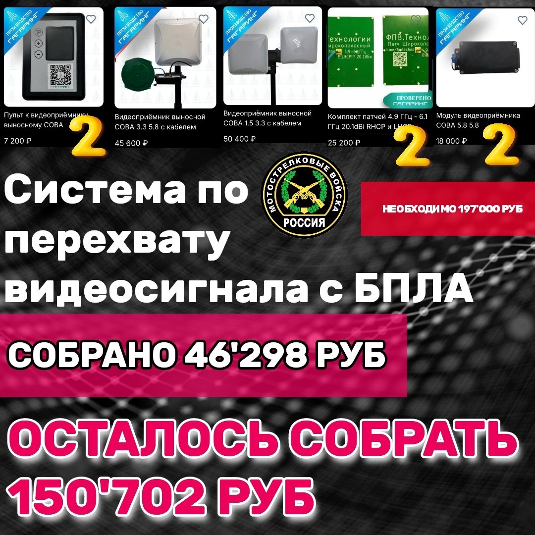 Друзья! Продолжаем сбор для расчёта ВОРОН на оборудование *СОВА*. ОНО крайне важно для минимизации беспилотных угроз. Благодаря «Сове» военнослужащие могут ❗️вскрывать планы ВСУ, а иногда даже ❗️выявлять координаты расположения расчётов вражеских БПЛА. Устройство выполняет одну из главных функций радиоэлектронной разведки в зоне СВО. 📌Сумма уже сбору - 197'000 🔺Собрано - 46'298 руб. 🔺Осталось собрать - 150'702 руб. Любую посильную сумму можно совершить по номеру карты 💳2202208188194204 или по номеру телефона 📞+79530562233 Получатель - Светлана Владимировна Л. ("Сбербанк"). *Оборудование будем заказывать у производителя после 100% предоплаты. Срок изготовления - 45 дней ‼️