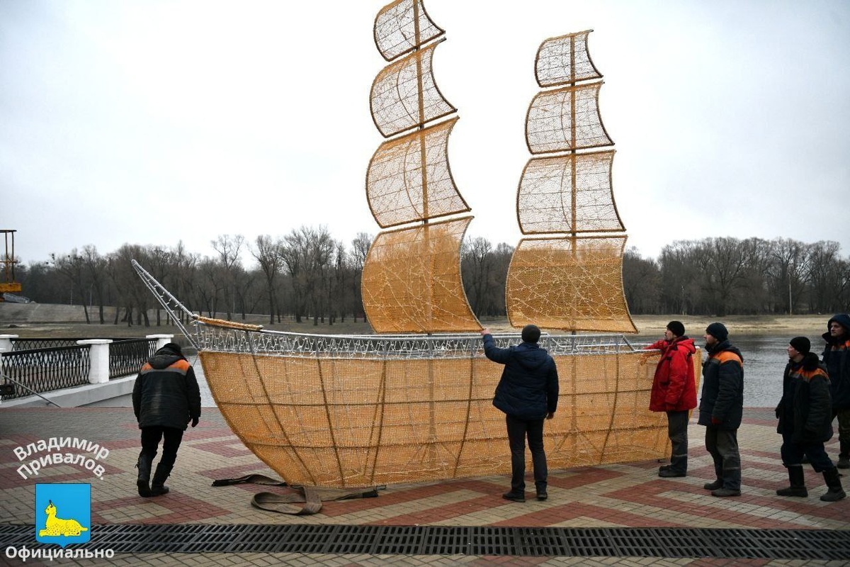 ⛵️На гомельской набережной установили светящийся парусник