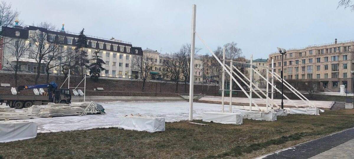 В парке «Чёрное озеро» приступили к установке новогодних украшений