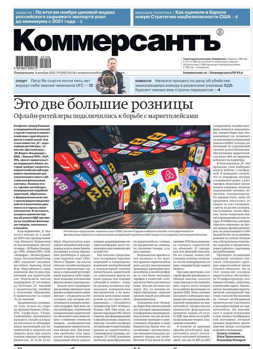 Офлайн-ритейлеры требуют запретить маркетплейсам субсидировать акции и работать с выгодными условиями для китайских продавцов. Сети «Детский мир», «М.Видео–Эльдорадо», DNS, «Лемана ПРО» и Hoff обратились к правительству с просьбой поддержать банки, которые настаивают на ограничениях для маркетплейсов. Ритейлеры утверждают, что такие площадки искусственно снижают цены за счёт повышения комиссий и штрафов для продавцов, что негативно сказывается на покупателях. Их беспокоит также, что маркетплейсы предоставляют более выгодные условия китайским продавцам по сравнению с российскими. Вдобавок они критикуют низкий беспошлинный порог ввоза товаров для физлиц (200 евро) и схемы налоговой оптимизации, позволяющие маркетплейсам обходить уплату социальных взносов и НДФЛ за счёт значительного количества самозанятых работников. ────────── ⚡️Важные новости – без лишнего шума!⚡️ Подпишись на канал и получай только суть: оперативно, чётко, по делу! 👉 ИнфоСплетник | @infospletnik
