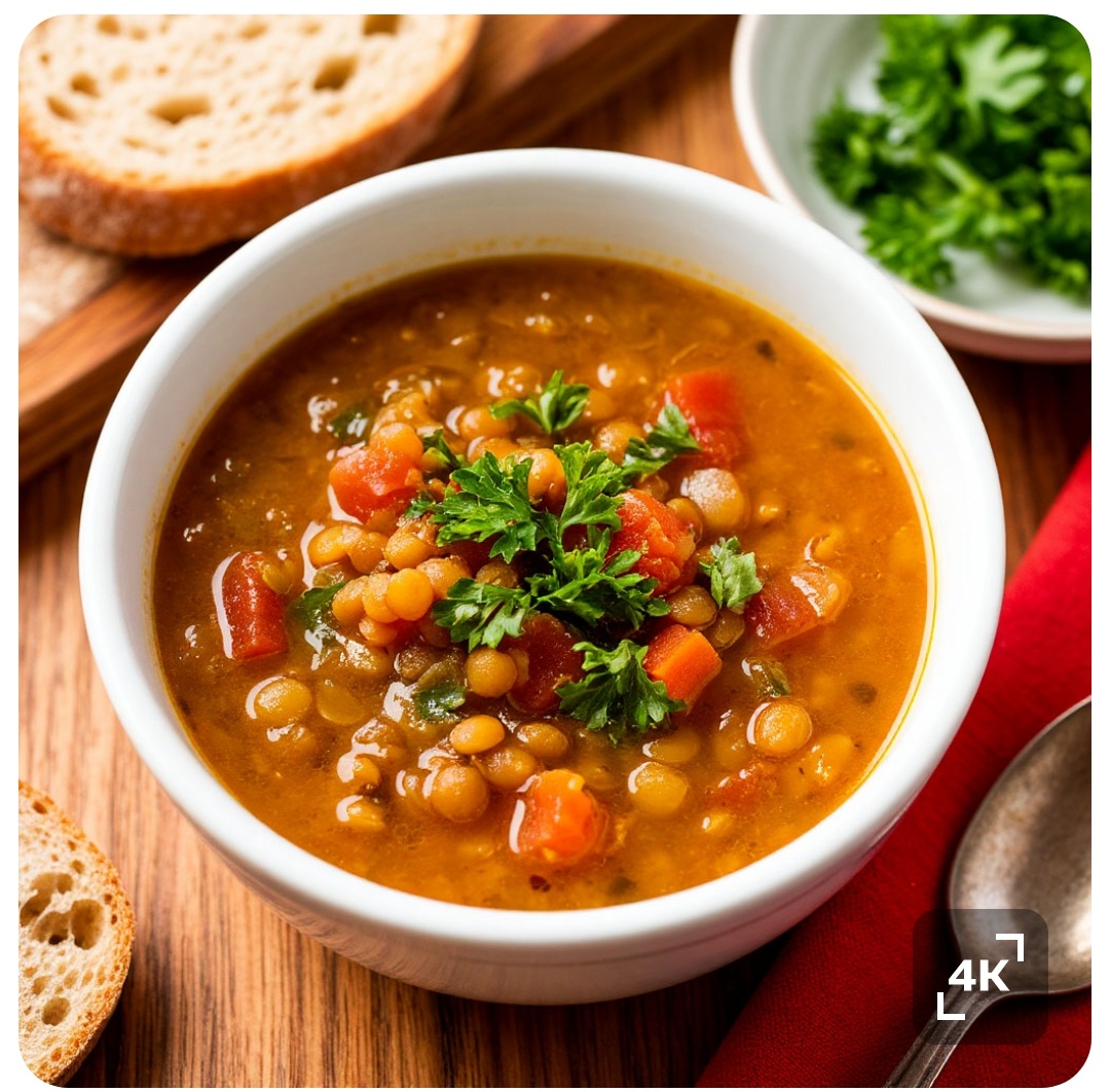 Суп из чечевицы — это сытное и полезное блюдо, которое прекрасно подходит для холодного времени года. Чечевица богата белком, клетчаткой, витаминами и минералами, что делает этот суп не только вкусным, но и очень полезным. В этом рецепте я расскажу, как приготовить классический суп из чечевицы с овощами и специями, который понравится как взрослым, так и детям. Ингредиенты: - Чечевица (желтая или красная) — 200 г - Морковь — 1 средняя - Лук репчатый — 1 шт. - Картофель — 2 средних - Помидор — 1 шт. или 2 ст. ложки томатной пасты - Чеснок — 2 зубчика - Растительное масло — 2 ст. ложки - Вода или овощной бульон — 1,5 л - Соль — по вкусу - Перец черный молотый — по вкусу - Лавровый лист — 1-2 шт. - Зелень (петрушка, укроп) — по желанию Приготовление: 1. Подготовка чечевицы. Чечевицу хорошо промойте под холодной водой, особенно если она красная или желтая, так как в них может быть пыль или мелкие камешки. Не обязательно замачивать чечевицу заранее, так как она в