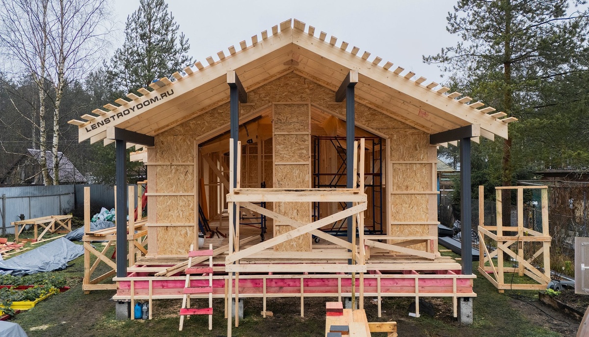 Собрали стропильную систему и готовим основание под монтаж кровельного покрытия на каркасном доме по проекту Scandi M в СНТ «Мотор», Всеволожский район. Периметр внешних стен зашили плитами OSB и смонтировали обрешетку под монтаж внешней отделки. Общие линейные размеры дома 14х6 м — жилая основа 12х6 м + торцевая терраса 2х6 м. В доме размещаются кухня-гостиная, 2 спальни, совмещенный СУ, холл. На все строящиеся объекты возможно приехать с экскурсией, чтобы оценить качество работ, масштабы дома, объемы комнат и других помещений. Если решите посетить наши объекты, свяжитесь с менеджерами они вас проконсультируют по всем вопросам. #ленстройдом #каркасныедома #Scandi_M www.lenstroydom.ru