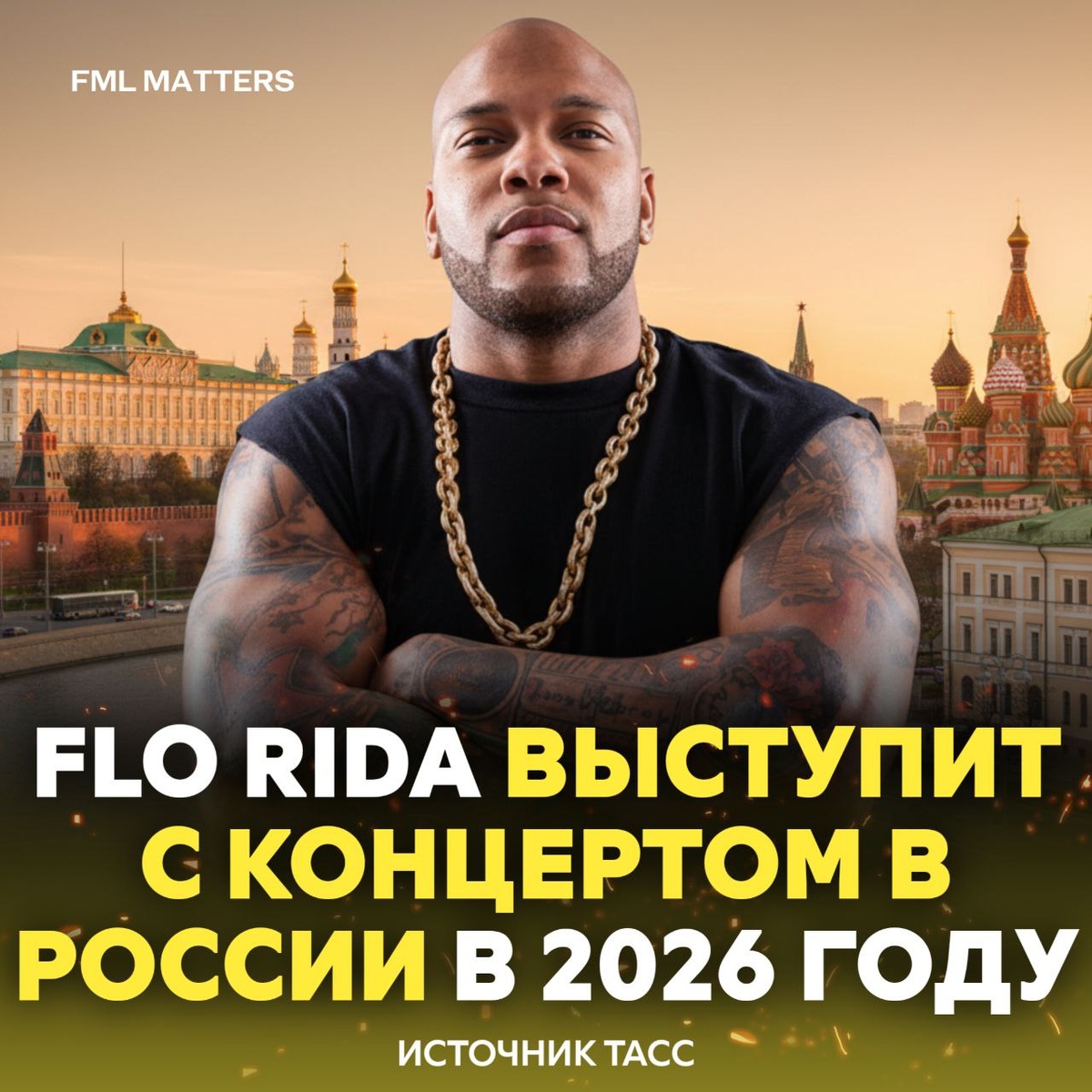 🔜 FLO RIDA ВЫСТУПИТ В РОССИИ ВЕСНОЙ 2026 ГОДА! Рэпер даст концерты в Москве, Краснодаре и Новосибирске. В столице Flo Rida выступит дважды — 8 и 9 марта 2026 года. Шарите за легенду? ❤️🔥 / 👎 💀 FML MATTERS