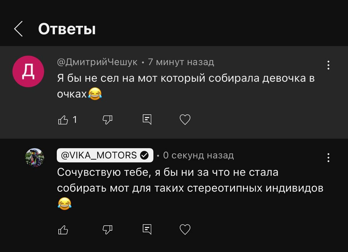 Время тупых комментариев😂⏰ ‼️Крайнее видео про сборку мотоцикла JHL MX YB300H, где я подробно показала процесс сборки и т.д. ‼️Мужики, если я кого-то ущемляю, то не стоит показывать это на всеобщее обозрение такими комментариями, выглядит глупо, мы ж в 21 веке живем…😃