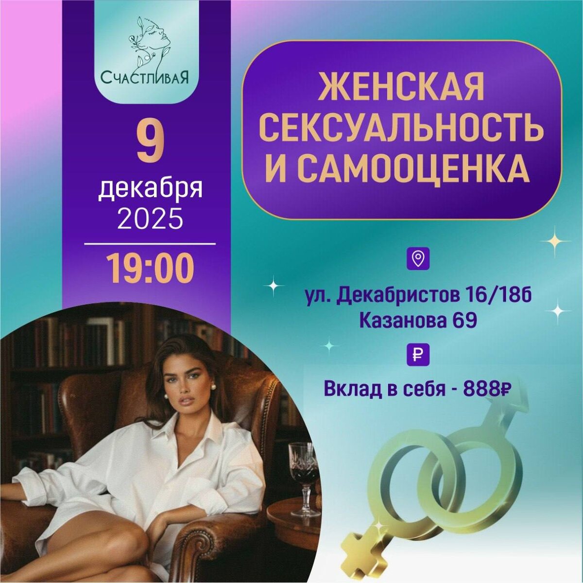 🤩🤩🤩🤩🤩🤩🤩 🤩🤩🤩🤩🤩🤩🤩🤩🤩🤩🤩🤩 🤩🤩🤩🤩🤩🤩🤩🤩🤩🤩🤩🤩 Сексуальная энергия — это прежде всего уверенность и позитивное отношение к себе. Женщины, которые ее излучают, покоряют одним взглядом, движением. Но далеко не всем удается задействовать этот ресурс: мешают родительские установки, разочарования в прежних отношениях, подавляемые желания. 9.12 вторник в 19:00 приглашаем вас на уникальный тренинг, который проведет секс-коуч и эксперт в области телесных практик и сексуального образования в студии Казанова 🔞 Безопасное пространство и конфиденциальность; Поддержка и глубокий искренний терапевтический контакт. В ПРОГРАММЕ: ❤️ Как формируется наша самооценка и какие факторы на нее влияют 👠 как почувствовать себя уверенно в сексе 💄 как понять свои желания и донести их до партнера, что значит быть ДЕЙСВИТЕЛЬНО хорошей любовницей 🧥 как быть довольной своей внешностью и не стесняться перед партнером ♥️ ЧТО ДЕЛАТЬ, чтоб ценить себя и жить яркой сексуальной жизнью! Самодиагно