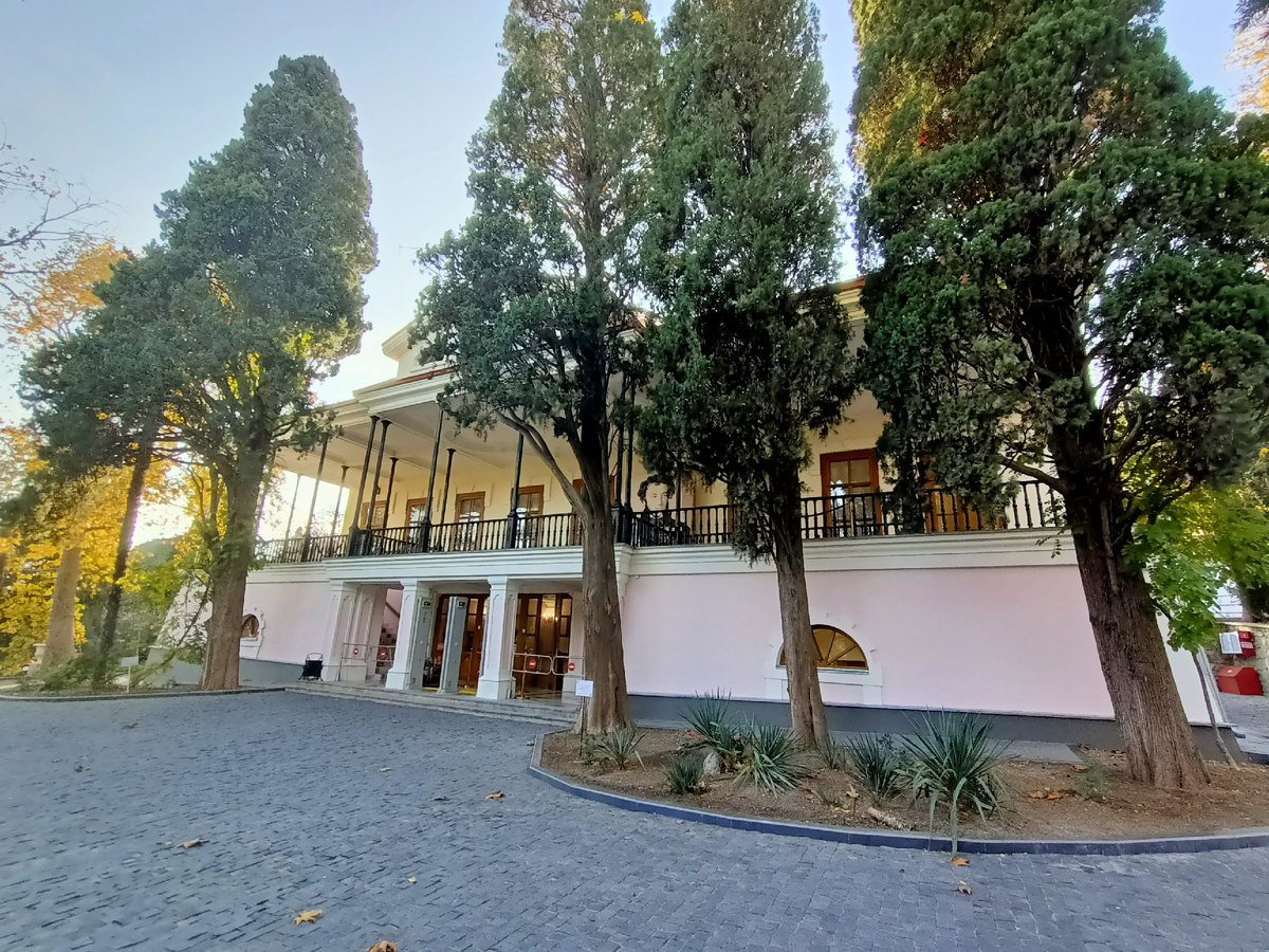 Два музея в одном! Первый - музей поэта! Второй - музей владельцев усадьбы! Краткий рассказ об этой странице музея здесь: Какой Вам больше понравится, решать Вам. Мне понравились оба! Из Феодосии до самого Юрзуфа ехал я морем. Всю ночь не спал. Луны не было, звёзды блистали; передо мною, в тумане, тянулись полуденные горы... «Вот Чатырдаг», сказал мне капитан. Я не различил его, да и не любопытствовал. Перед светом я заснул. Между тем корабль остановился в виду Юрзуфа. Проснувшись, увидел я картину пленительную: разноцветные горы сияли; плоские кровли хижин татарских издали казались ульями, прилепленными к горам; тополи, как зелёные колонны, стройно возвышались между ими; справа огромный Аю-Даг...и кругом это синее, чистое небо и светлое море, и блеск и воздух полуденный..... В Юрзуфе жил я сиднем, купался в море и объедался виноградом; я тотчас привык к полуденной природе и наслаждался ею со всем равнодушием и беспечностию неаполитанского Lazzaroni. Я любил, проснувшись ночью, слушат