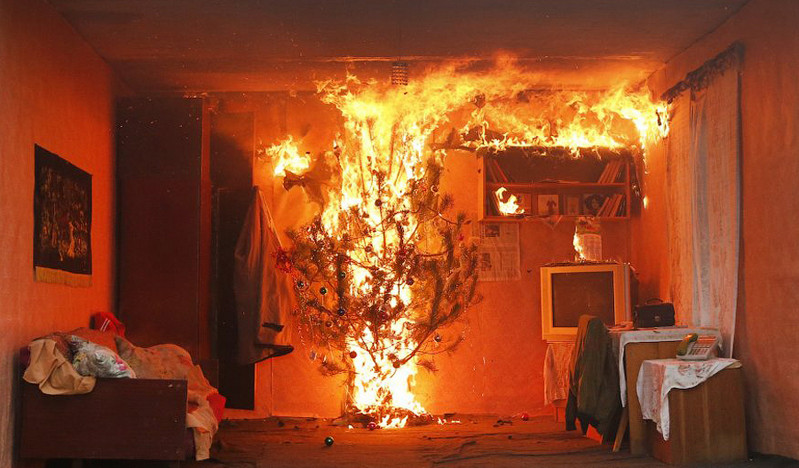 И вот в какой-то момент сначала слышен лёгкий треск, потом — запах, иногда вспышка на ёлке. Немного везения — всё успеют вырубить. Поменьше — загорятся игрушки, мишура и ветки.