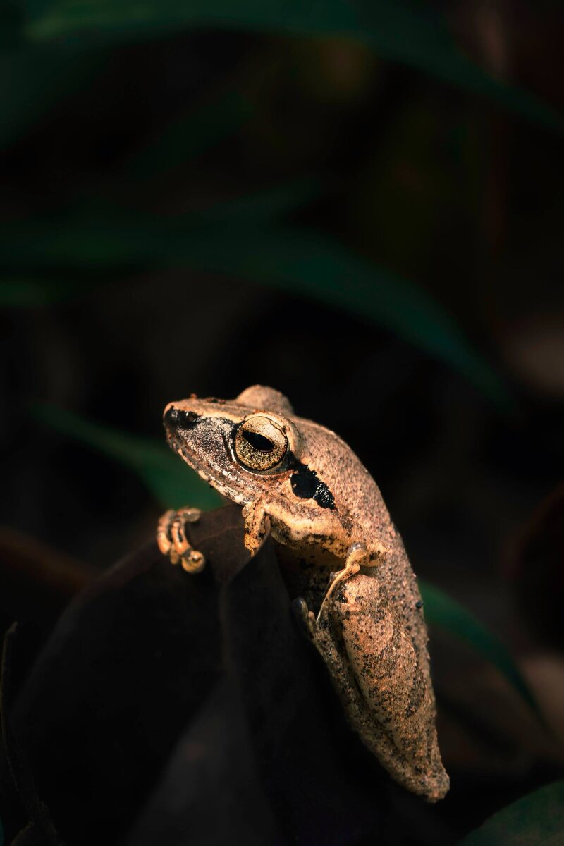 🐍 Амболи. Поездка за змеями ⛰️🛵⛰️ Главная цель этой вылазки - Ahaetulla borealis, редкая плетевидная змея, которая встречается только здесь. Не ядовита, невероятно изящна - настоящий символ этих влажных лесов, парочку встретили, но увы - жертвы дороги. 👀 Второй кандидат - Craspedocephalus malabaricus, тоже эндемик, но уже серьёзный противник: ядовитый, скрытный, активный ночью. Ну и мечта любого натуралиста — королевская кобра. Хотел хотя бы поклониться и, если повезёт, сделать пару кадров. Но в этот раз - без змей. Такое бывает. Через пару дней поедем снова — уже на ночь. И перед самым отъездом меня ждала маленькая награда 🐸 — Amboli Bush Frog (Pseudophilautus amboli). Миниатюрный эндемик, живущий на территории размером почти с футбольное поле. 🧙♂️Несколько фактов про Амболийскую Кустарниковую Лягушку: – 🔴 Вид критически редкий и находится под угрозой исчезновения. – 🌧️🌴Живёт только в Амболи, в зоне влажных горных лесов. – 📏 Размер взрослой особи - всего 2–3 см. – 🎶 Са