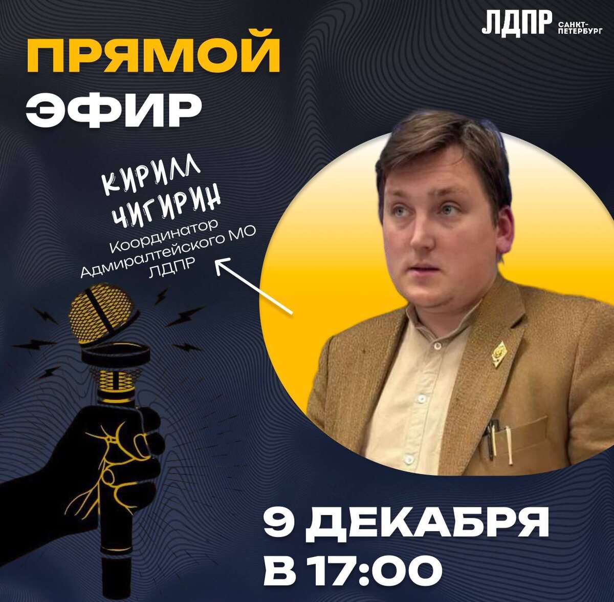 Прямой эфир ЛДПР в Санкт-Петербурге Уже 9 декабря в 17:00 состоится прямой эфир с Кириллом Чигириным, координатором Адмиралтейского местного отделения ЛДПР. Тема эфира: защита прав граждан на основе реальных кейсов судебной практики. • Как эффективно отстаивать свои права? • Какие инструменты работают на практике? • Что важно знать каждому, кто столкнулся с произволом или несправедливостью? Подключайтесь, задавайте свои вопросы в прямом эфире и получайте ответы от эксперта! ЛДПР - всегда на стороне людей! 🔗 Мы ВКонтакте 🖥 Сайт ЛДПР | Санкт-Петербург