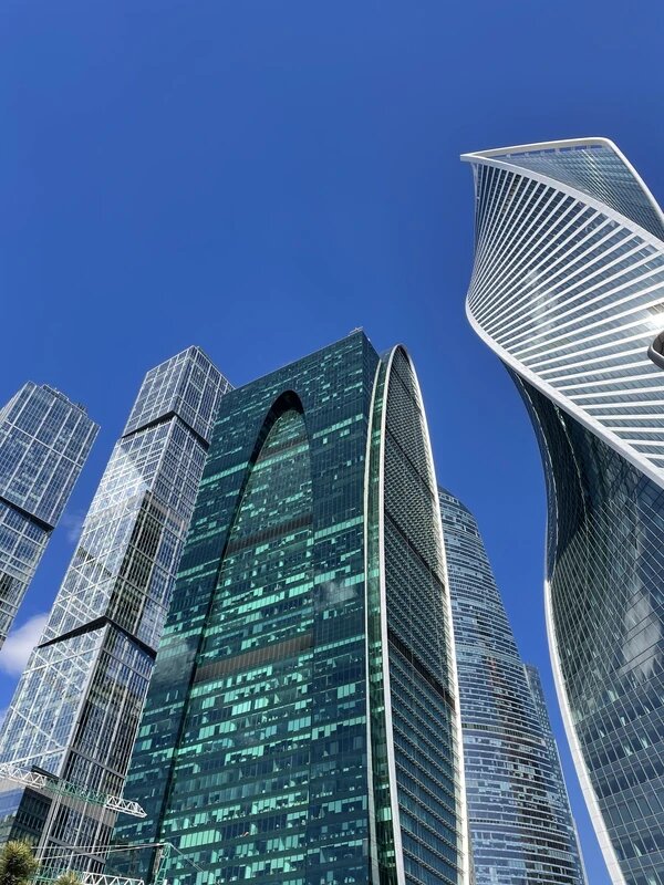 - Элегантные здания Москва-Сити, олицетворяющие будущее