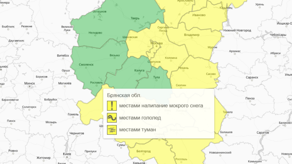 Гидрометцентр сообщил о сохранении в регионе неблагоприятных погодных условий. Брянцам предстоит туман, гололёд и налипание мокрого снега. В Брянской области продолжает действовать жёлтый уровень метеоопасности. Обновлённая информация о потенциальных погодных рисках размещена на сайте Гидрометцентра России. С вечера 8 декабря и до утра 9 декабря в регионе ожидается туман. Местами видимость может существенно ухудшаться. Также с 9:00 до 21:00 9 декабря прогнозируется гололёдно-изморозевое образование. Отдельные участки дорог и тротуаров могут оказаться скользкими. В этот же период синоптики предупреждают о налипании мокрого снега. Осадки могут привести к обледенению проводов и деревьев. Ранее мы сообщали, что брянцам пообещали туманный и морозный понедельник без осадков. В Брянской области продлили жёлтый уровень метеоопасности