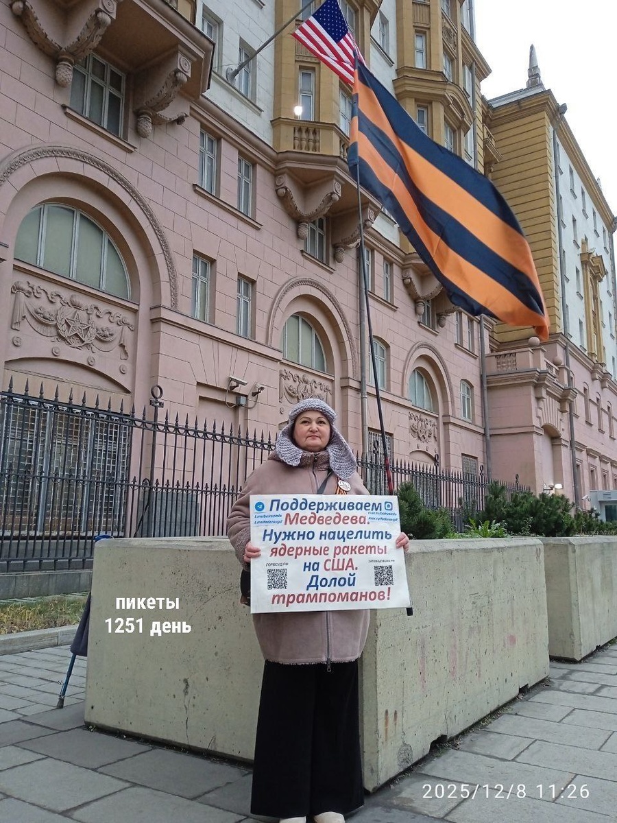 Одиночные пикеты у посольства США. 1251 день Москва, 8 декабря 2025 #ПосольствоСША