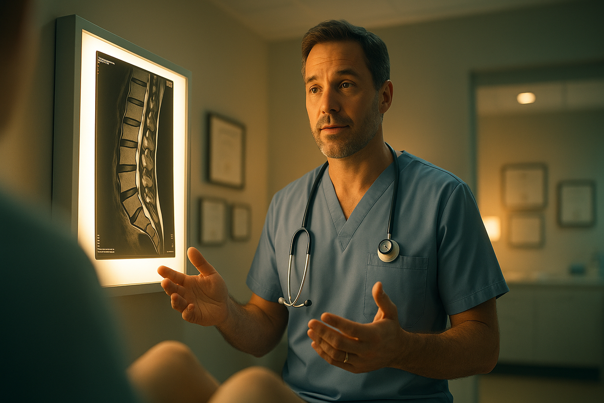 Ты сидишь на краю кровати с диском МРТ в руках, как с приговором. Жена: «Ну ты там скажи, что ты ещё молодой». Мама в мессенджере: «Только не соглашайся на операцию!!!». А в голове уже крутится трейлер фильма: тёмный коридор, табличка «Нейрохирург», за дверью — монстр с гигантским скальпелем и фразой: «Ну что, режем?». ➡ Получите прямо сейчас и облегчите жизнь своей спине! В голове картинка: суровый нейрохирург в маске Дарта Вейдера, который на входе уже машет скальпелем и выписывает направление «отрезать всё лишнее». В реальности тебя встречает обычный человек в халате, без музыкальной заставки из хоррора, который сначала спрашивает: как ты живёшь, ходишь ли нормально, не отнимается ли нога, как спишь, как работаешь. И только потом спокойно открывает МРТ и объясняет по-человечески, что операция на позвоночнике — это не приговор, а инструмент, который нужен далеко не всем. Внутренний диалог в кабинете обычно выглядит так: Параллельно всплывают все форумные «эксперты»: И ты сидишь, кив