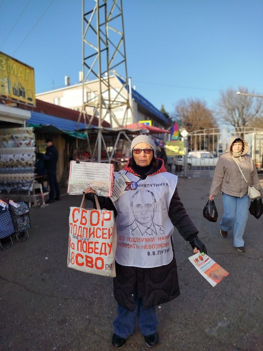 Активист НОД из г.Ейска Вера Филипповна 6.12.2025г. провела в г.Краснодаре акцию по сбору подписей за ЧП В.В.Путину. 4 человек подписали. 4 человек присоединились к миллионному исковому заявлению. 40 человек взяли наши газеты "НК Суверенитет". Сегодня на выставке цветов в Доме культуры "Железнодорожник" немного пообщалась с людьми и раздала газеты. Наши сайты: ЗаПобедувСВО.рф полномочияпутину.рф горбсуд.рф