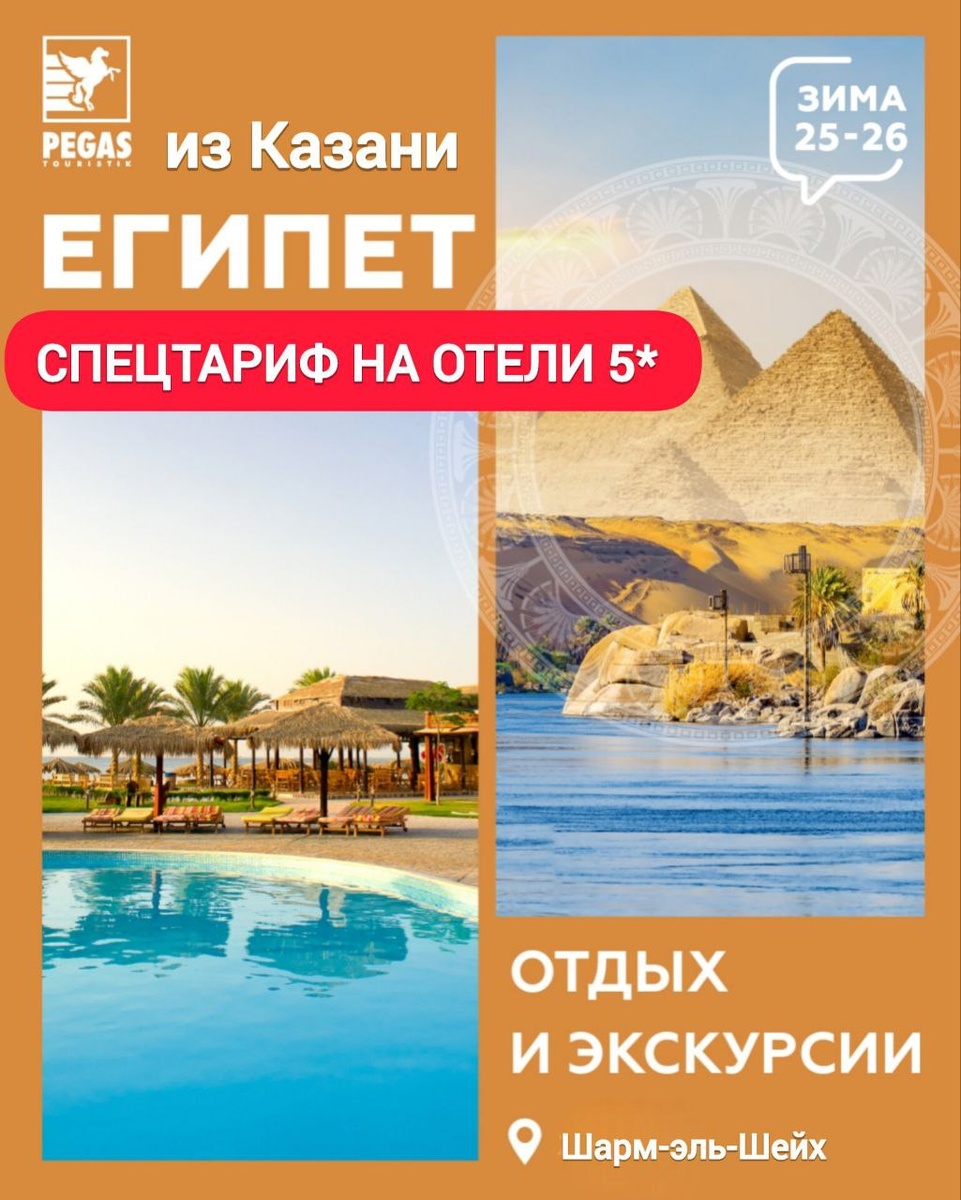 🔥🔥🔥🔥Отдых в Египте по жаркой цене! ☀️Коллеги, отличная новость: 🤝До 15 декабря действует специальное предложение на туры в Шарм-Эль-Шейх 🇾🇪: снижена стоимость на проживание в отеле до 49%. 🛫 Туры из Казани в Шарм-эль-Шейх, Шаркс Бей с вылетом 13 декабря на 10 ночей: 📎 Pickalbatross Luxury Suites Resort 5*, AI от 68 913 ₽ 📎Xperience Sea Breeze Resort 5*, AI: от 71 572 ₽ 📎Sultan Gardens Resort 5 *, AI: от 104 117 ₽ 🛫 Туры из Казани в Шарм-эль-Шейх, Хадаба с вылетом 13 декабря на 10 ночей: 📎 Pickalbatross Aqua Park Resort 5*, AI от 95 839 ₽ 📎Renessance Sharm El Sheikh Golden View Beach Resort by Marriott 5*, AI: от 85 666 ₽ 📎Monte Carlo Sharm El-Sheikh Resort 5 *, AI: от 80 807 ₽ 🛫 Туры из Казани в Шарм-эль-Шейх, Монтазах с вылетом 13 декабря на 10 ночей: 📎Meraki Resort Sharm El Sheikh 5*, AI от 159 819 ₽ 📎White Hills Sharm El Sheikh 5*, AI: от 166 089 ₽ 💳 Цены на тур на одного человека указаны с учётом перелета, трансфера, страховки и проживание в 1/2 двухм