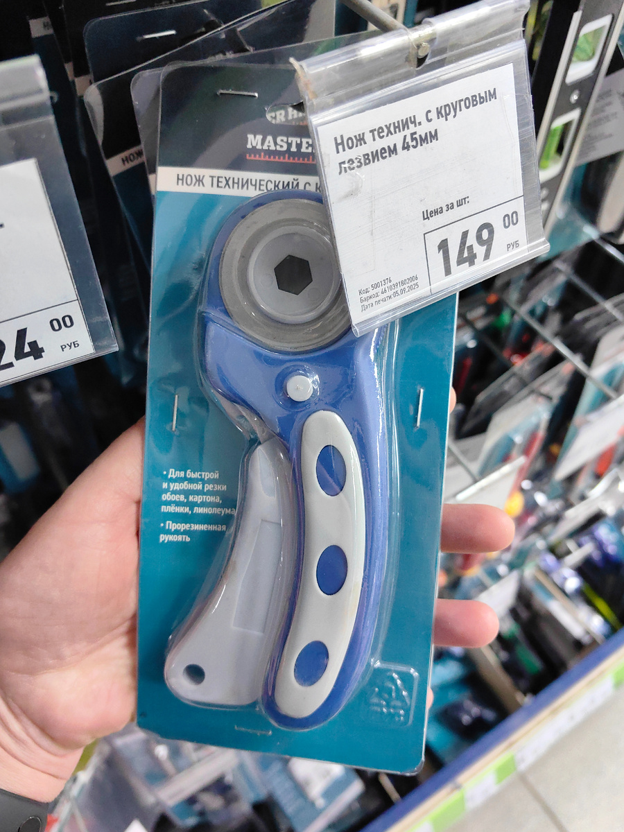То тут, то там в Фикс Прайс можно найти новинки не без пользы. Например, не было таких раньше, сейчас привезли. Как для пиццы, а на деле для ремонта - для линолеума, для картона тоже подойдет. Пригодится, когда необходимо ровно отрезать кусок обоев. Касание к полотну можно отрегулировать при помощи винта. Предусмотрена кнопка блокировки. Диаметр лезвия 4,5 см. Рукоятка с прорезиненной вставкой и с подвесом. Еще новинка для дома. На вид как ваза, а на деле это светильник. Внутри тонкая светящаяся нить, вспыхивает, словно искорками. Теплыми. Поверхность отражает все, что находится рядом. Работает такой светильник от батареек. А эта новинка - фонарь, ручка с креплением, похожим на карабины. В рюкзаке или в сумке будет больше свободного места, так как ручка складывается. Можно использовать как привычный фонарь, подойдет для дачи, на природу брать с собой. Единственное, зарядки хватит не более чем на два часа свечения. Затем вновь зарядить аккумулятор. Три режима, один для дальн