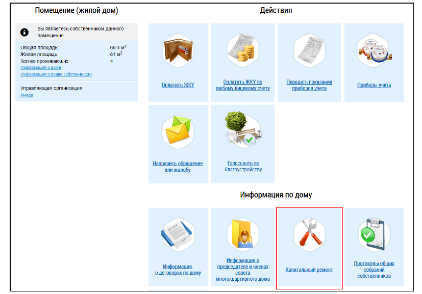 Автор: Новости ЖКХ Опубликовано 14.08.2021. Обновлено 02.12.2025 Приводим инструкцию, как в ГИС ЖКХ найти подробную информацию о капремонте многоквартирного дома. Для начала нужно зайти в личный кабинет. Откроется страница «Сведения о капитальном ремонте многоквартирного дома». 2. Выберите интересующий Вас дом из выпадающего списка в поле «Адрес дома». Откроется информация о формировании фонда капремонта, учёте средств на капремонт по дому, договорах на выполнение работ по капремонту и самих работах. Если информация о договорах на выполнение работ по капремонту не размещена в Системе, в блоке «Договоры на выполнение работ по капитальному ремонту» появится уведомление: «Информация не размещена». 3. Для просмотра информации о владельце счёта нажмите на ссылку с наименованием владельца счёта. Откроется страница «Сведения об организации». 4. Для просмотра информации об организации, уполномоченной на предоставление платёжных документов, нажмите на ссылку с наименованием организации. Откроет