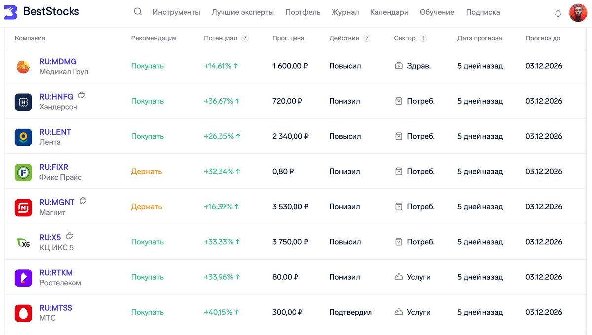 Аналитики Атона выпустили инвестиционную стратегию на 2026 год Топ-5 акций по потенциалу роста на год: 1. Глоракс (GLRX) +102,09% 2. Озон (OZON) +64,95% 3. Банк ВТБ (VTBR) +64,43% 4. Яндекс (YDEX) +60,16% 5. Промомед (PRMD) +58,97% 3 акции рекомендованы к продаже: 1. Распадская (RASP) 2. Банк Санкт-Петербург (BSPB) 3. Совкомбанк (SVCB) Все прогнозы команды аналитиков Атон представлены в их профиле @beststocks