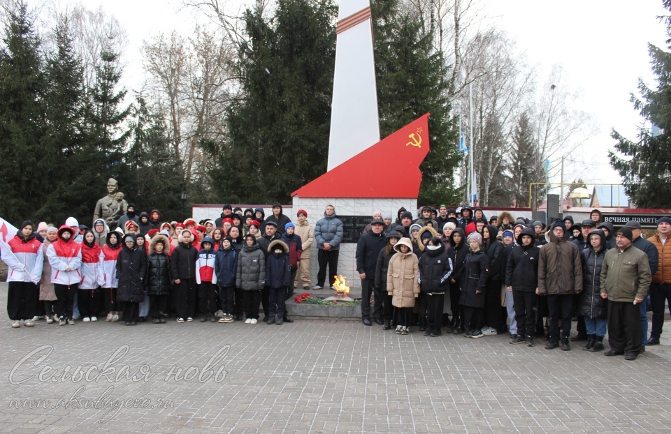 На мемориале Воинской славы состоялся торжественный митинг, посвященный Дню Героев Отечества. В мероприятии приняли участие представители трудовых коллективов, молодежных организаций, общественных формирований, учащиеся школ райцентра и студенты Аксубаевского техникума. Почетную вахту у Вечного огня несли члены отряда форпоста. Торжественный митинг открыл глава района Алмаз Мингулов. – В этот день мы чествуем героев Великой Отечественной войны, соцтруда и Специальной военной операции. Этот праздник посвящен людям, которые сделали многое для России и нашей республики, – сказал он. – Мы гордимся ими. Очень радостно видеть, что молодежь активно участвует в патриотических движениях – юнармии, «Форпост» и «Движении Первых». Это – дань уважения памяти наших героев. Руководитель района поблагодарил представителей общественных формирований за поддержку СВО и семей участников Специальной военной операции. – Каждый из нас вносит свой вклад в общую Победу, – подчеркнул он. Участники митинга п